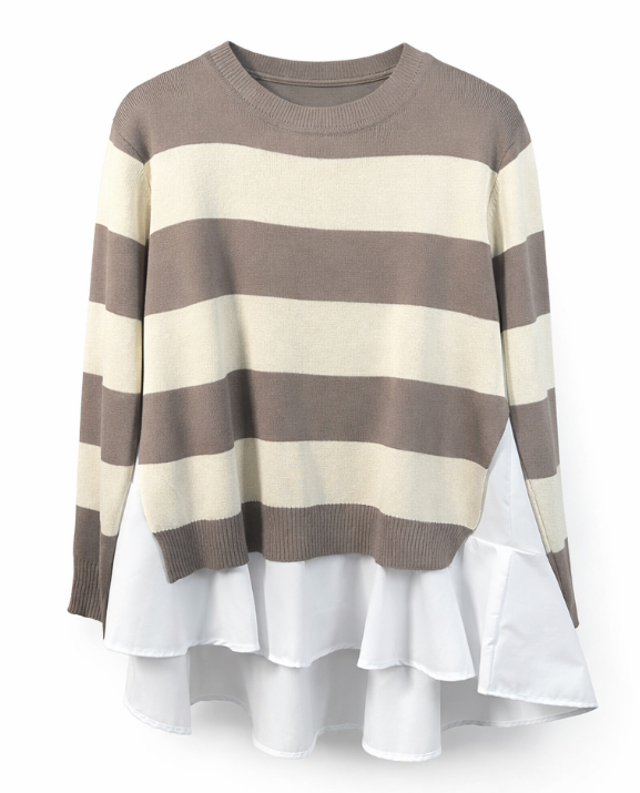 綿シャツとボーダーニットのツイン