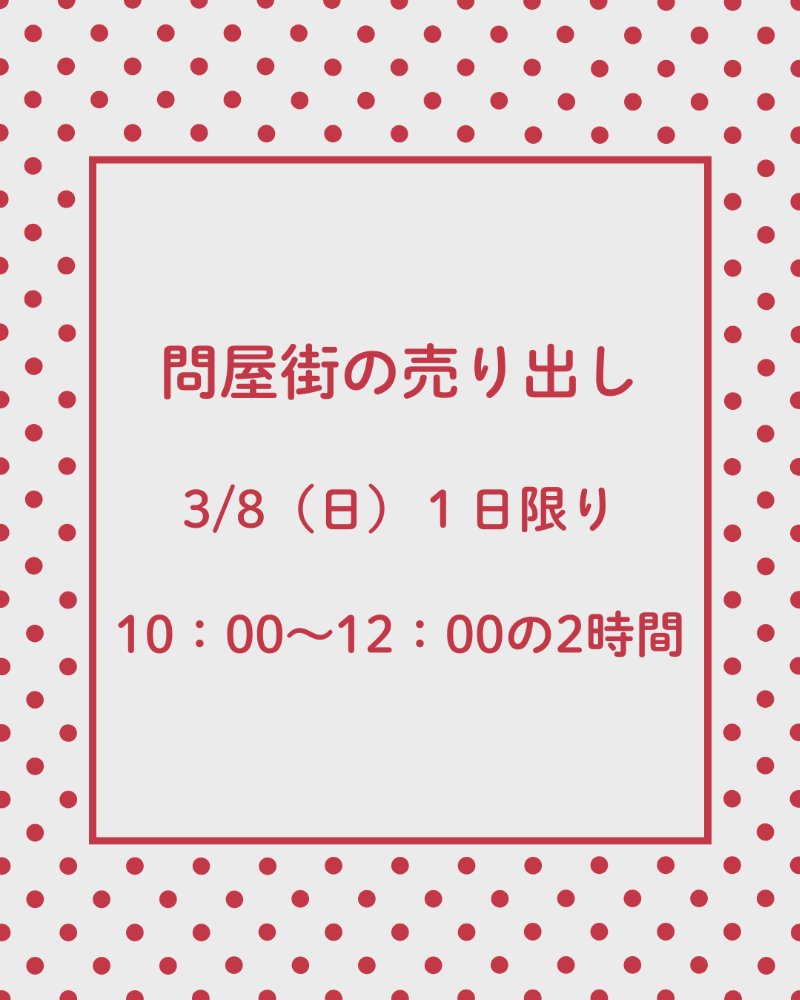 ※開催時間の前後は混み合いますので、お電話での受け付けは致しておりません。